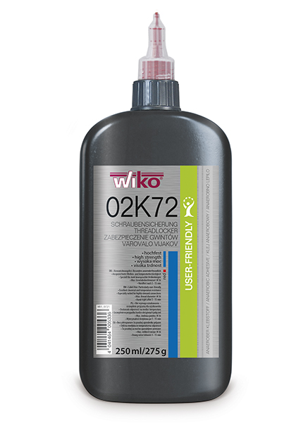 WIKO 02K72UF is a high-strength and universally applicable threadlocker for fastening and sealing metal materials. The product cures (polymerises) in the absence of atmospheric oxygen (anaerobic) and under the catalytic influence of the metal (metal contact).